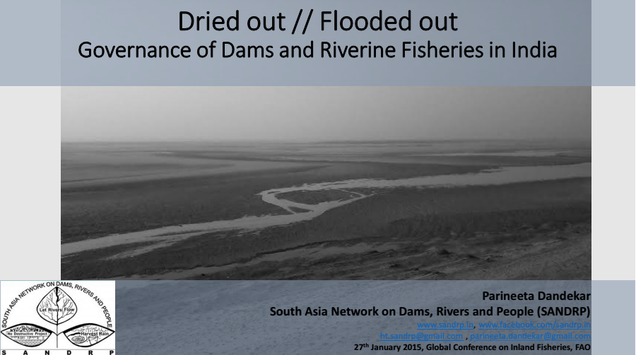 2. Parineeta Dandekar’s presentation at the FAO Conference on Policy and Governance of Indian Indian Inland Fisheries Sector: https://sandrp.in/wp-content/uploads/2015/01/policy_governance_indian_fisheries_global_inland_fisheries_conference_fao.pdf