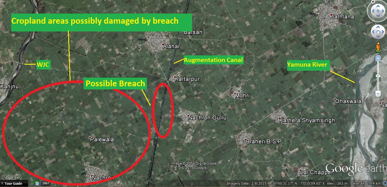 The breach reportedly occurred about 14 km downstream Hamida Head on Western Jamuna Canal (WJC) in Yamuna Nagar district around 03:00 am on 12th of April 2015. From all accounts, it seems like an avoidable manmade disaster about which credible independet inquiry alone can help arrive at truth.