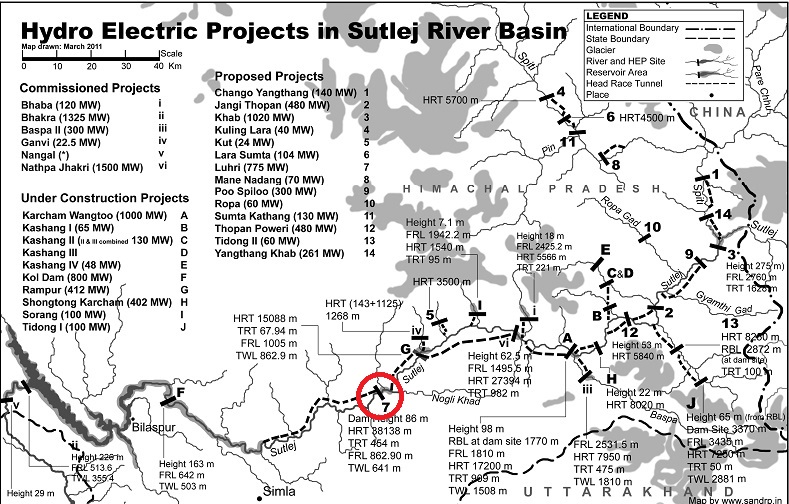 Luhri TOR Clearance recommended without following basic norms The EAC recommended the TOR clearance without ensuring at least one km of free flowing rivers with respect to the upstream project, and also allowing the environment flows through the dam toe power house, violating the basic environmental flow norms. This was in spite of SANDRP submission pointing out these issues. This again is a perturbing recommendation. The EAC had earlier noted that lack of 1 km of free flowing river from the upstream project is in violation of minimalist EAC norms, but it refrained from asking for this, claiming that this was not considered at the TORC of the earlier Luhri Proposal. Now when the EAC is considering the TORC for the new Luhri proposal, it is refusing to consider its minimalist norms. The EAC must review this proposal and also discuss the possibility of leaving this portion of the Sutlej as free flowing: As the last flowing portion available for Sutlej.