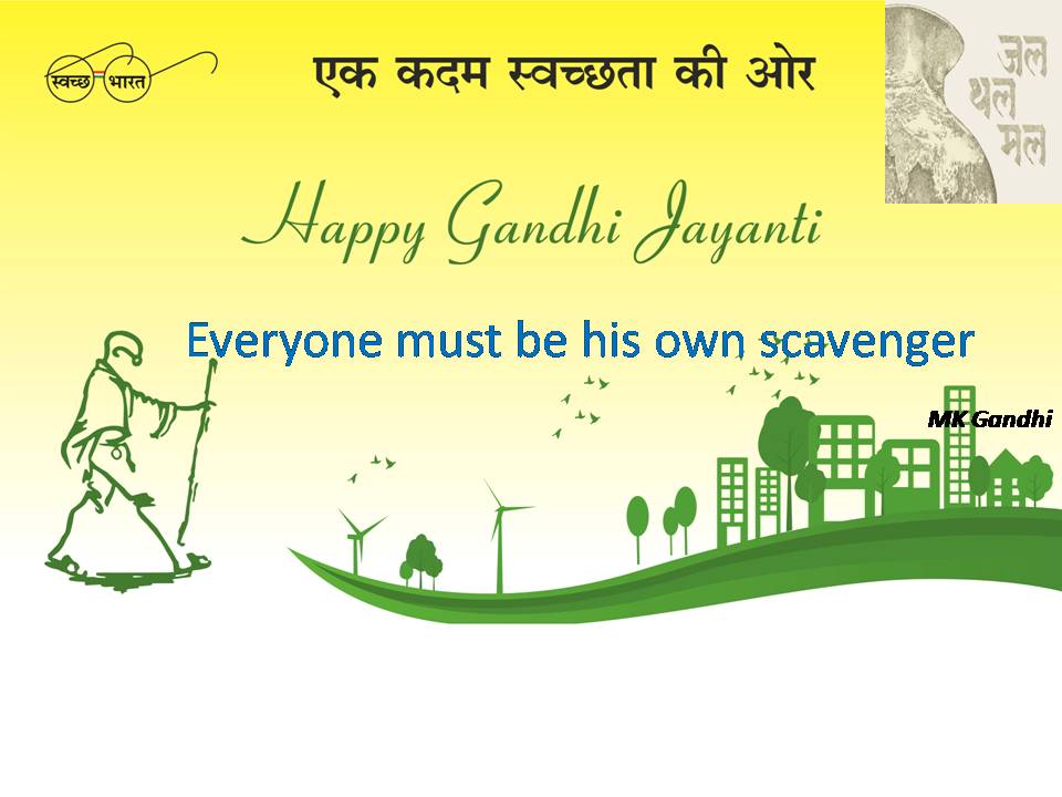 आज गॉधी जंयती है और स्व्च्छ भारत अभियान को भी दो वर्ष पूरे हो गए हैं। दो दिन पूर्व, 30 सितम्बर को इंडोसैन समारोह का उद्घाटन करते हुए प्रधानमंत्री श्री नरेन्द्र मोदी जी ने देश को स्वच्छ बनाने के लिए स्वच्छाग्रह चलाने का मंत्र किया है। स्वच्छ भारत मिशन के तहत आयोजित इस समारोह में उन्होंने सीमित संदर्भ में ही सही दो ओर बड़ी अच्छी बातें कहीं, एक स्वच्छता को लेकर हमें अपने आचरण में बदलाव लाना चाहिए और दूसरा जैविक कूडे़ कचरे से खाद बनायी जा सकती है। दूसरी ओर शहरी विकास मंत्री वैंकया नायडू के अनुसार देश में 1 लाख से ज्यादा गॉव खुले में शौच से मुक्त हो गए हैं।