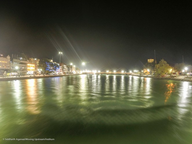 What is also sad is how people do not seem to care about the physical form of the river at all, and this isn’t even about the behind the scenes dumping of untreated sewage and drains into the river. The very fact that in Haridwar, the main bathing ghat (Har Ki Pauri) is actually a canal where water is diverted through a series of barrages, speaks volumes about our disconnect, from both the physical and devotional. The actual riverbed lies dry, with only a small stream flowing. Those that society despises occupy the banks and the river accepts, the poorest of our people living in temporary tarp and bamboo structures.