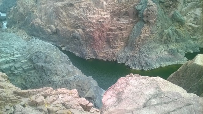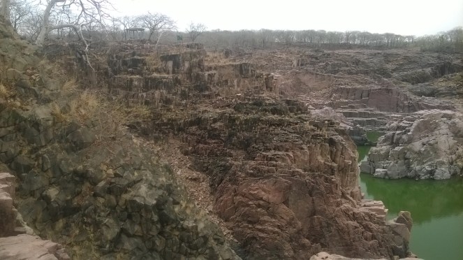 Having seen Grand Canyon of the US when I visited it in Sept 2011 as part of 4 week India-US Exchange visit, I was immediately struck when our local guide said many foreigners call it India’s mini Grand Canyon. Latter, I read on the web that others also call it India’s mini Niagra, since the 30 m high (98 ft as per MP Govt Website) water fall is here is one of the highest and best of India. Its striking that people have seen replica of two different wonderful places of the world at one place, but so few people know about it. The depth of some of the craters in this 5 km long canyon is said to be upto 60 m.
