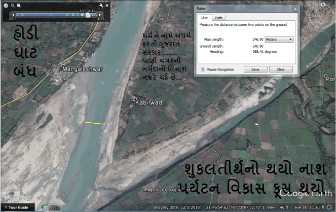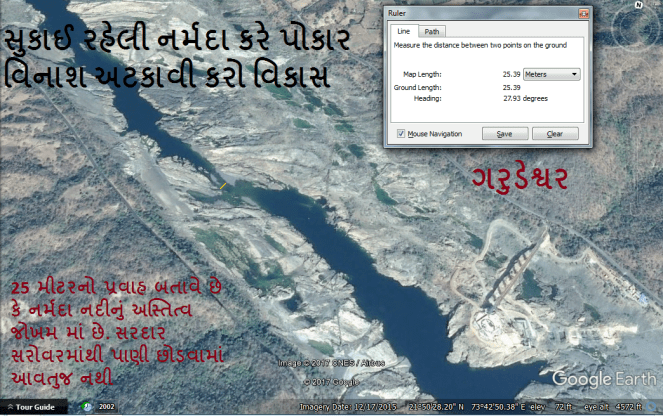 The reduced release of water from the Dam has resulted in hugely reduced river water flow and right now in the downstream the river is mostly dried up and lost its characteristics as a river. The river banks are filled with silt and it has lost its natural beauty. To sustain the fresh water in the river and the development of the religious Ashrams, the state govt has proposed this Bhadbhut dam to reduce the impacts caused by their illegal act of non release of adequate water from Sardar Sarovar dam.