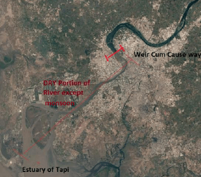 Tapi River Industrial waste aggravates river pollution In a letter to Prime Minister Narendra Modi, who has claimed to have begun a major mission to clean up India’s rivers, starting with Ganges and Yamuna, a top South Gujarat NGO has alleged that sewage waters are being released into the Tapi River river, as it reaches Surat, which is Gujarat’s second biggest city, and as Tapi flows beyond into the sea, which is just 30 km away. Brackish Water Research Centre, an NGO in Surat shows how the industries and Urban sewage are destroying Tapi River. https://www.counterview.net/2017/05/industrial-waste-discharge-into-south.html (Counter View, 3 May 2017)