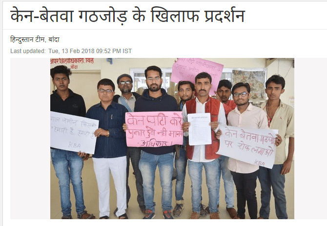 The group have also sent a memorandum to the President of India, demanding immediate cancelling of the project. Raising serious concerns over environmental and social of the linking project, they asked demanded proper impact assessment and public consultation and said the project wont be allowed to go forward. Indeed, as they have said, there has been no downstream impact assessment and people of Banda are likely to loose their river. https://www.livehindustan.com/uttar-pradesh/banda/story-demonstrate-against-ken-betwa-alliance-1800951.html (Hindustan Hindi,13 Feb. 2018)