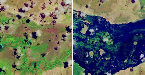 Floods in East Africa in May 2018 NASA image shows the flooding in East Africa, on May 9 2018. Hundreds of thousands of people in eastern Africa have been affected by heavy rains and devastating floods in April and May, especially near the Shebelle and Jubba rivers. Originating in Ethiopia, they are Somalia’s only perennial rivers. Flooding burst the banks of the Shebelle River in several locations, destroying houses and crops and causing more than 120,000 people to flee their riverside homes since April 2018. The floods are some of the worst on record for the region. Heavy rains are expected to continue through mid-May, which could create more problems in areas where rivers are already at full capacity.