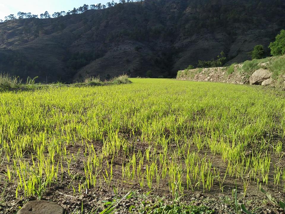 Paddy nursery, Syunsal village, Thailsain block, Pouri Garhwal, Uttrakhand. In about a month these plants would transplanted. So far, I could list about 17 varieties (15 irrigated & 2 rainfed) of rice grown in the small belt known as Patti Chauthan.