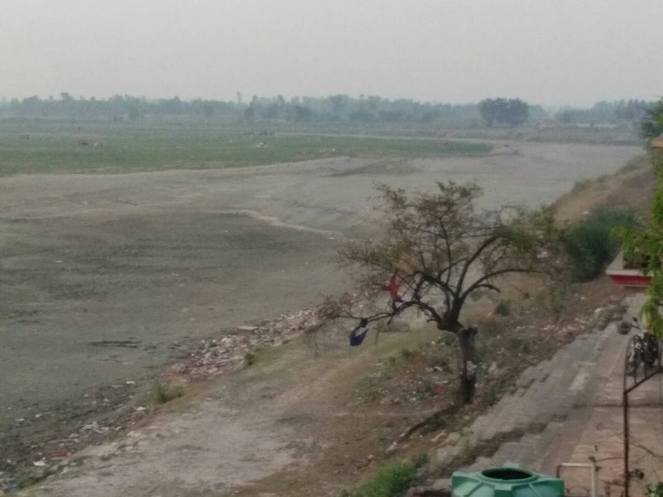 Dry Yamuna River at Panipat about 90 km upstream Delhi. Despite NGT order, Haryana Govt is not releasing 352 cusecs from Hathini Kund Barrage, Yamuna Nagar, depriving the River of its flow & leaving villagers at receiving end. Wild & aquatic life worst hit. (Bhim Singh Rawat)