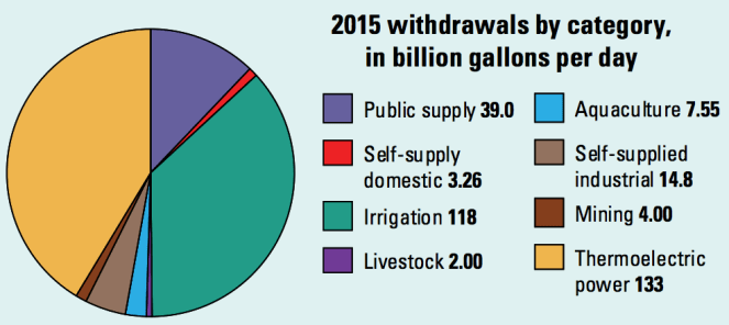 [iii] Consumptive use is the fraction of total water withdrawals that is unavailable for immediate use because it is evaporated, transpired by plants, or incorporated into a product.