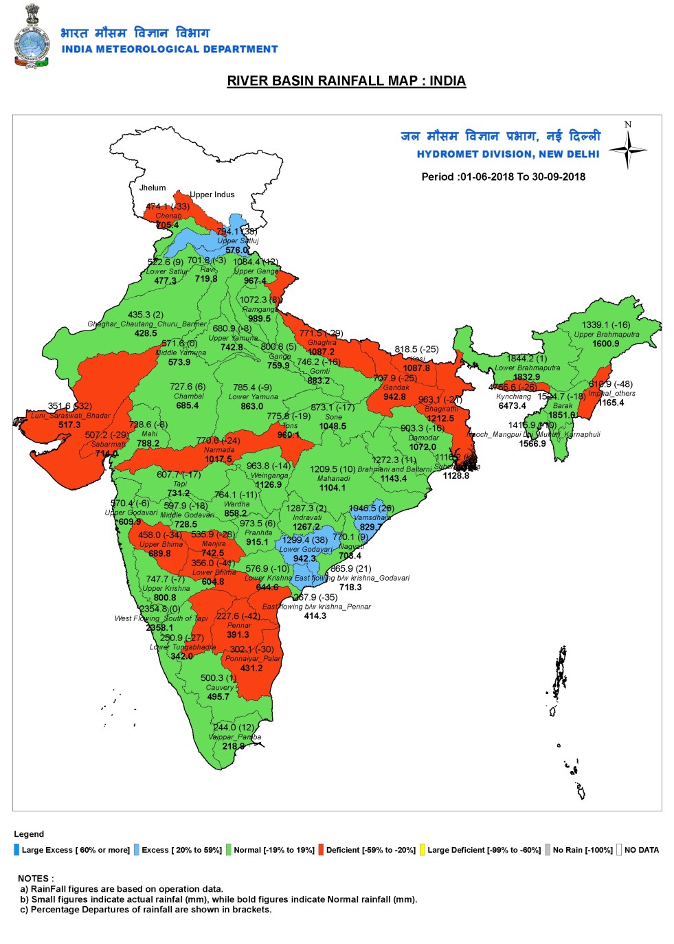 India’s most important season from water point of view, the June-Sept South West Monsoon has just ended officially on Sept 30, 2018. India Meteorological Department (IMD) reported that India received 804 mm rainfall in these four months of monsoon 2018, compared to normal rainfall of 887.5 mm. So Monsoon 2018 rainfall was 9.4% below normal, also proving IMD forecast wrong. Continue reading “River Wise Rainfall in Monsoon 2018”