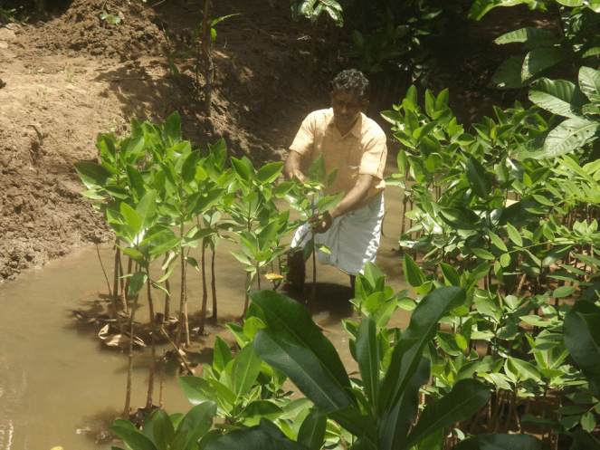 Amidst all the fights to educate the people on the estuary and need to protect and preserve wetlands, HELP Foundation does mangrove plantations across the banks of the Paravul lake, see photo.