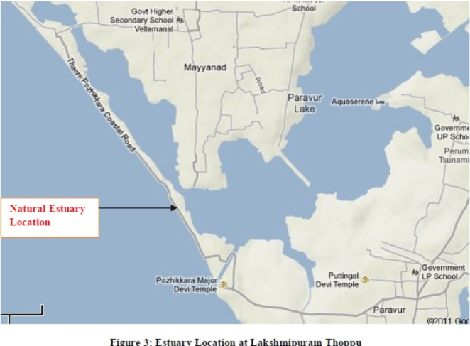 During the Aug 2018 floods, we witnessed a clear evidence of the consequences of tampering with the natural estuary. According to a recent news report in the daily, Deccan Chronicle (Aug 21, 2018), “During this flood, the district administration had to channel the excess water by cutting open an outlet at a spot parallel to the original estuary. Each time while the water is let out by tunneling, the Government loses huge money. The construction of spillway in the North-South direction is purely unscientific, since the Ithikkara river flows into the Paravur lake from the Eastern direction and flows straight to the West. And to make matters worse, the spillway is constructed some 500 meters away from the natural estuary. This has also resulted in sand deposits formed during the high tide, considerably reducing the water storage capacity of the lake.” (See photo of Deccan Chronicle article).