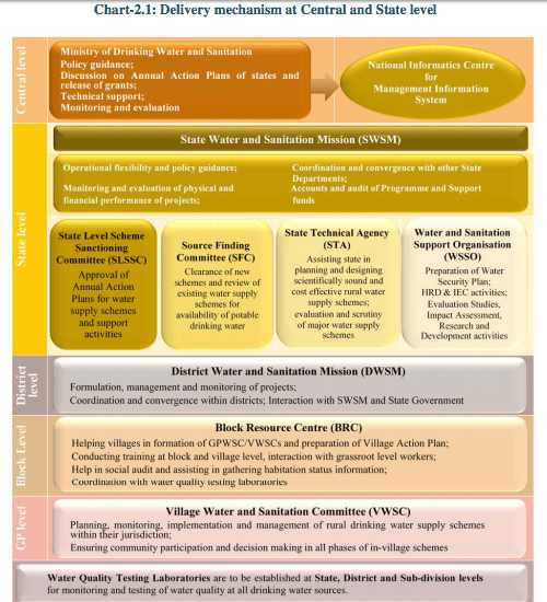 - National Drinking Water and Sanitation Council[ii] (NDWSC) had remained dormant/ non-operational during the period 2012-17. As a result, a co-ordinated and convergent approach with other stakeholders was missing in the planning and implementation of the Programme.