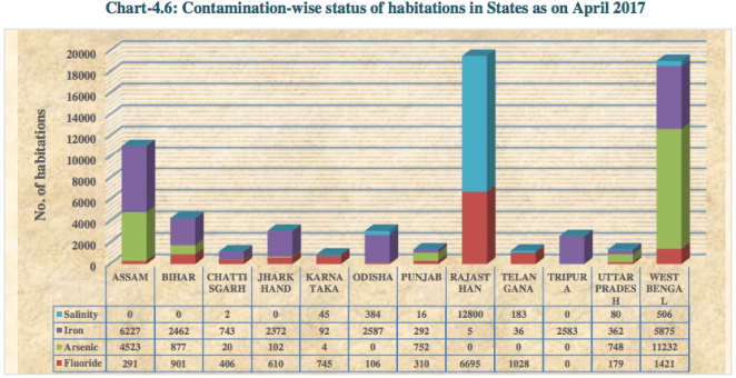 - The figure below provides state wise break up of habitations affected by various contaminations.