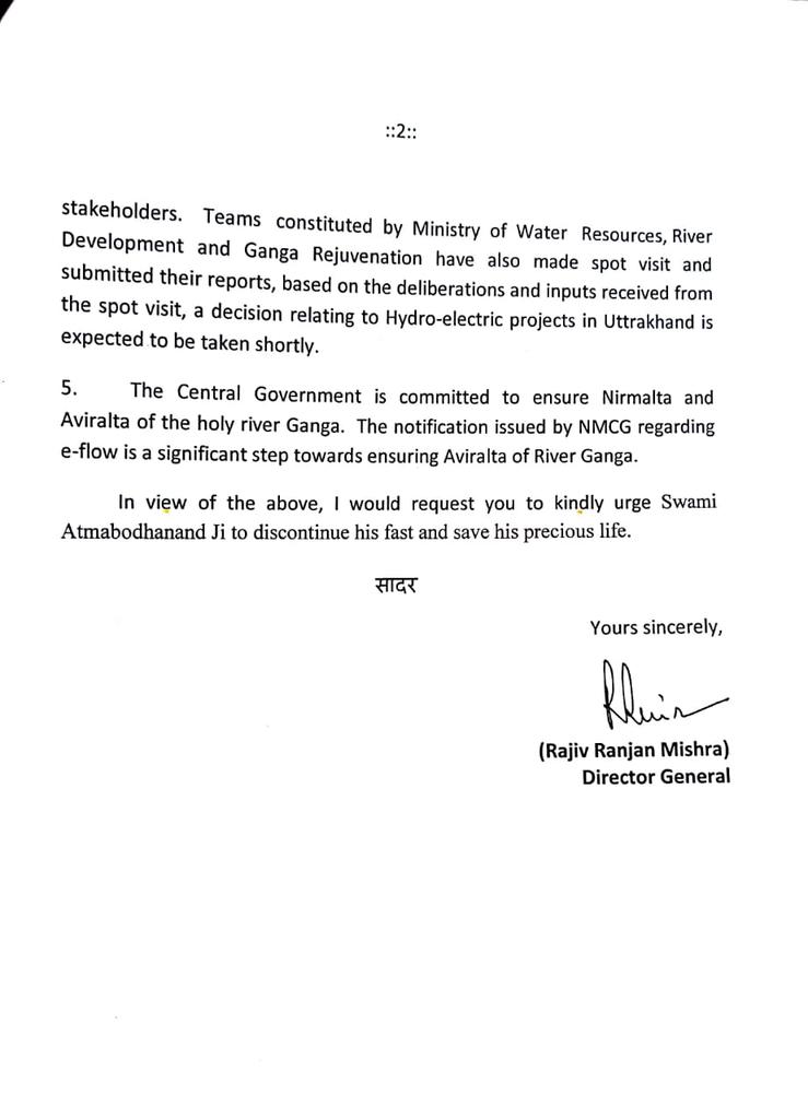 इस पंक्ति को मुख्य मानते हुए यानी कि 25 अप्रैल को जब पहली बार राजीव रंजन जी मातृसदन आए थे और उनकी स्वामी शिवानंद जी से और आत्मबोधानंद जी से बात हुई थी उस पूरी बात का आधार इस एक पंक्ति में आ जाता है। इसी पंक्ति को मद्देनजर रखते हुए और पूरे पत्र की शाब्दिक से अधिक आत्मिक भावना के साथ आज युवा संत आत्मबोधानंद जी के 194 दिनों के उपवास को विराम देने का निर्णय लिया। http://cgbasket.in/?p=23197