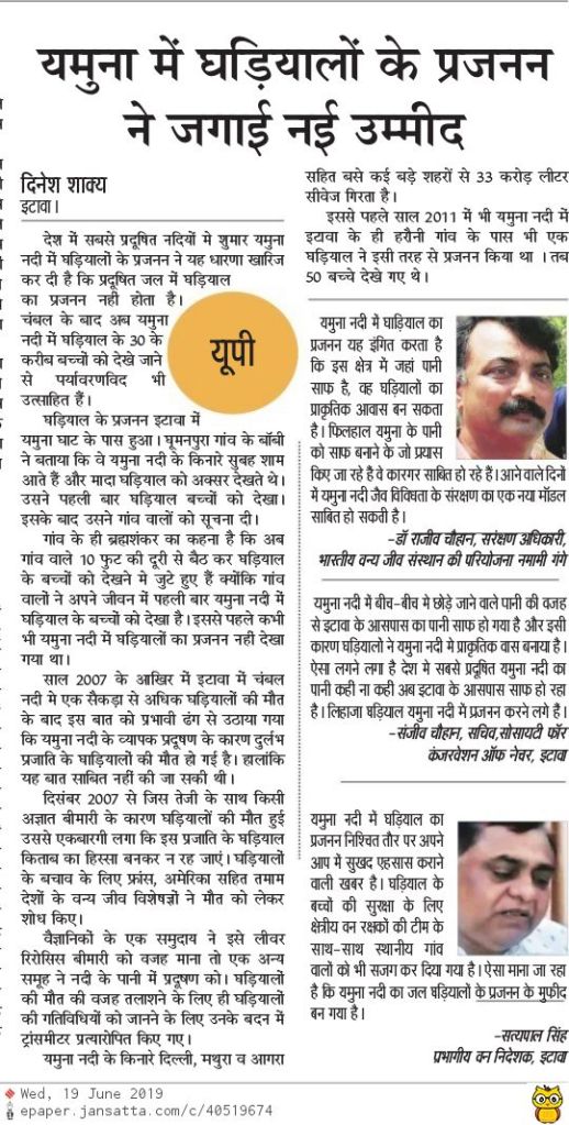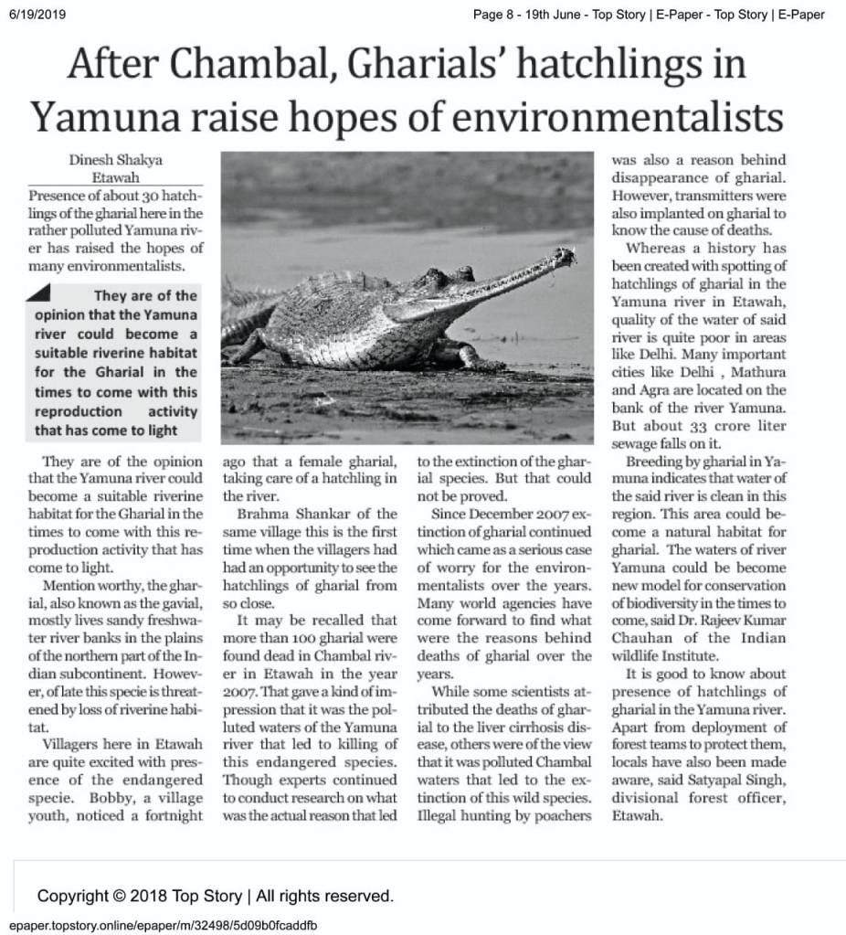 Media reports mention of Ghariyal breeding in Yamuna at Ithawa, Uttar Pradesh. But headlines are wrong suggesting it impact of river cleaning work. This had happened in 2011. The reason is Chambal and its tributaries are still in better condition keeping the river live and flowing.
