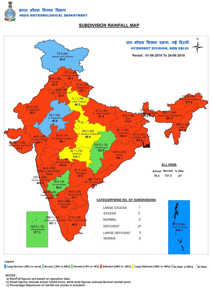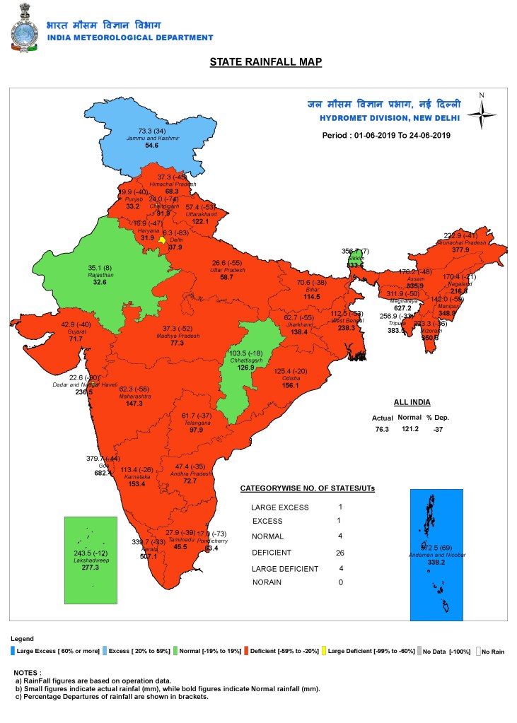 IMD All India Weather Warning Bulletin IMD heavy rainfall warning for the next five days: http://www.imd.gov.in/pages/allindiawxwarningbulletin.php (20 June 2019)
