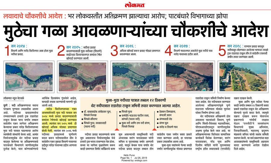 Mutha, Pune: Marathi news report on Mutha river encroachment.