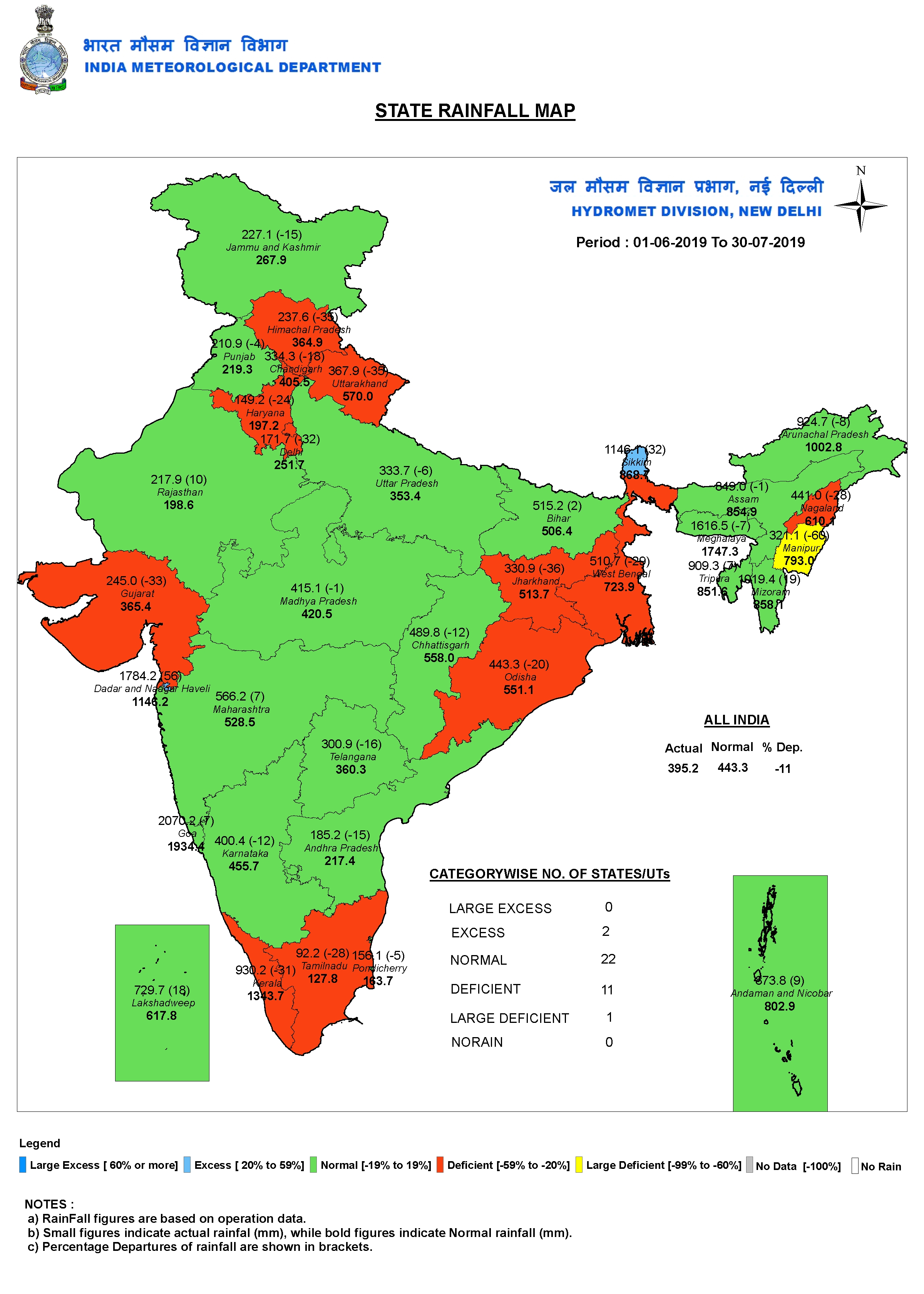 MONSOON IMD’s rainfall maps as on July 30, 2019.