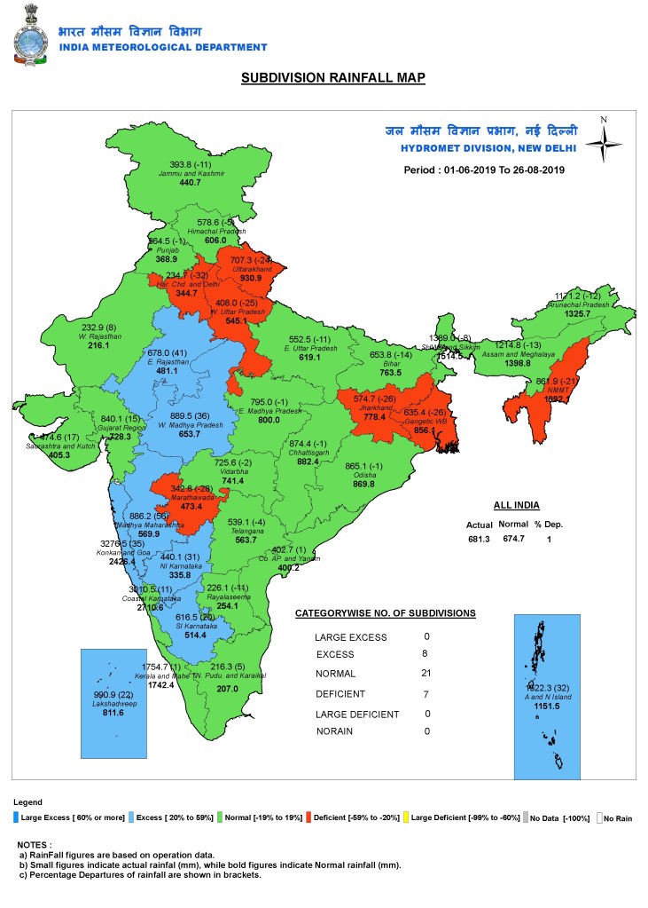 – The two worst-affected regions also received exceptionally high rainfall between August 8 and August 14, according to data with India Meteorological Department (IMD). Mallapuram received 500% more rainfall (594.3mm) than the normal of 99.1mm. Wayanad received 401% excess rains, getting 707.5mm against a normal of 141.1mm. https://www.hindustantimes.com/india-news/climate-change-takes-a-toll-on-western-ghats/story-WhFqwhJBTsbGXMLvUyR31M.html (23 Aug. 2019)
