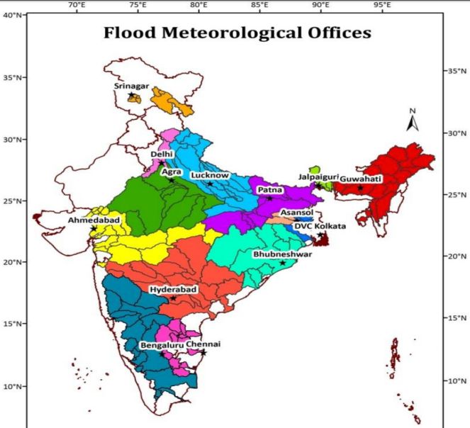 A section of IMD website[vi] says that this is provided by ten Flood Meteorological Offices (FMOs at Agra, Ahmedabad, Asansol, Bhubaneshwar, Guwahati, Hyderabad, Jalpaiguri, Lucknow, New Delhi. Patna) provide this information, covering basins are given below. An option for more information provided here[vii] for each of these ten FMOs and three additional ones (Bhakra Beas MB, DVC Kolkata and Jhelum River Basin), but no information could be accessed on any of these pages.