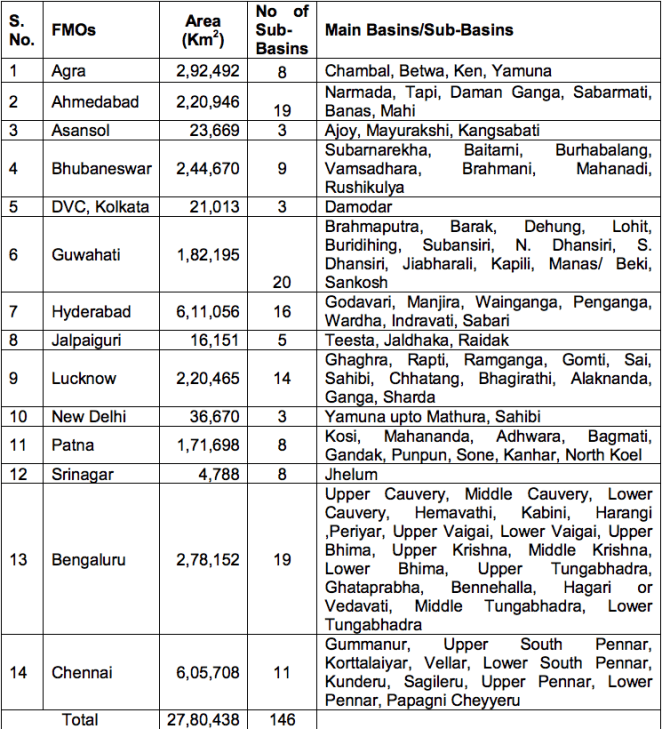 Basins/ Sub Basins covered When we go through the details of the list of basins and sub basins, we see that it includes 101 sub basins spread over 27 basins, as provided in the Annexure 1 below. From the list, one can see that it covers following regions.