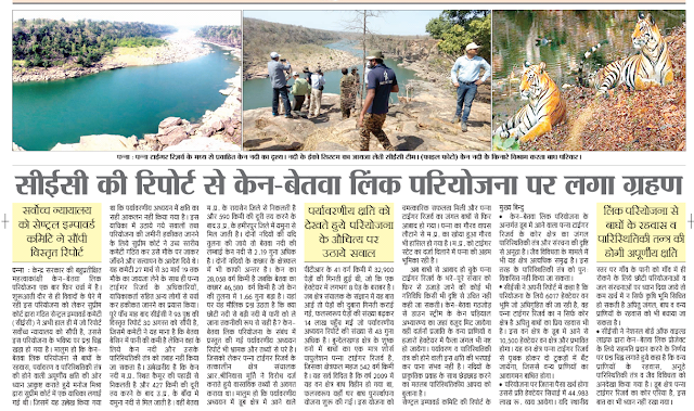 Hindi news covering CEC report on impact of Ken Betwa Link on environment, forest tiger population in Panna. http://pannastories.blogspot.com/2019/09/blog-post_9.html
