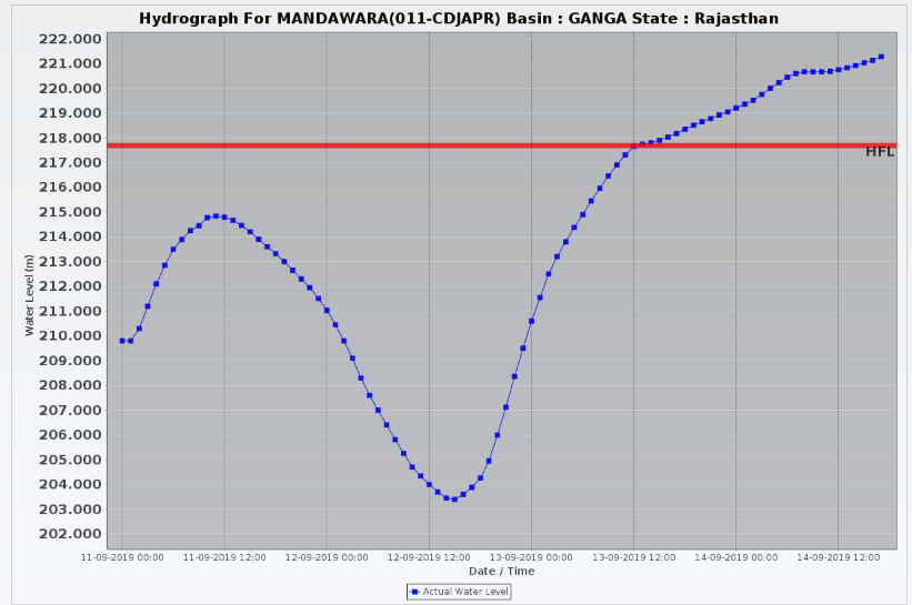 Indian rivers crossed highest flood level 25 times in August 2019 According to this report, in Aug alone, HFL was crossed at 25 places, but no list is given or source of this figure of 25. https://www.downtoearth.org.in/news/india/indian-rivers-crossed-highest-flood-level-25-times-in-august-2019-66818 (19 Sept. 2019)