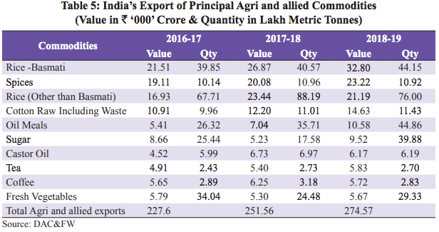 How much water are we EXPORTING? The Economic Survey 2020 provides following table giving figures of agricultural export in recent years.