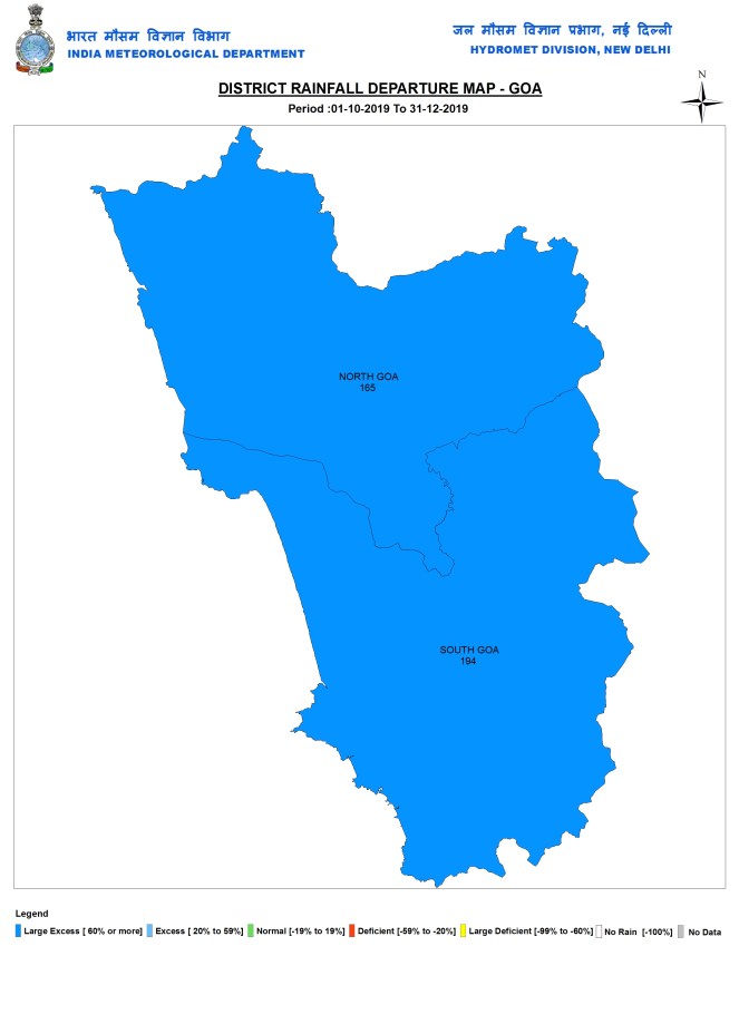 During post monsoon 2019 months, it got 172.6 mm or 40% above normal rains.