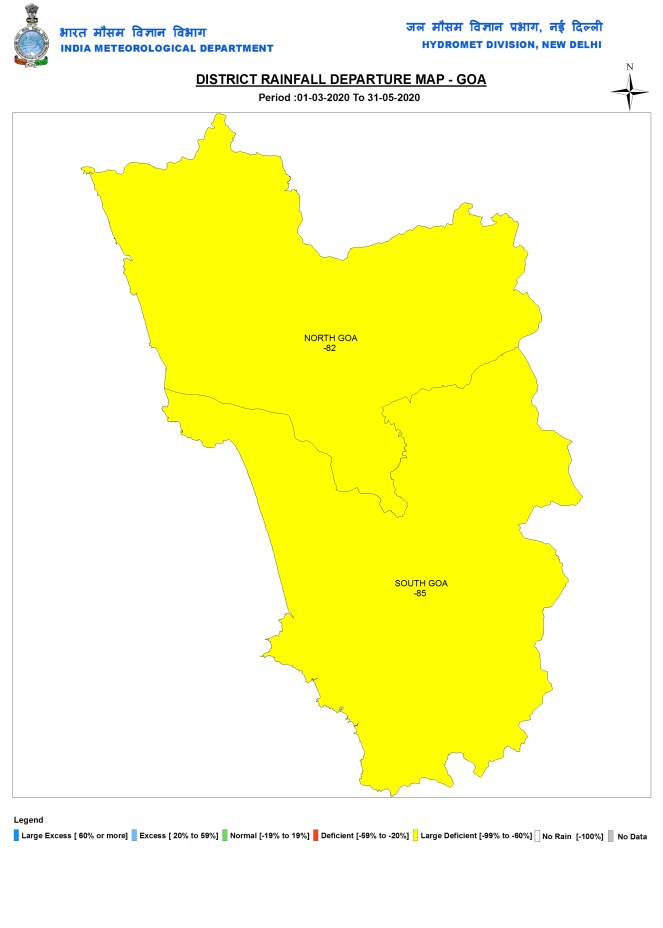 Goa During pre monsoon 2020 season, Goa had just 15.4 mm rains, 84% below normal.