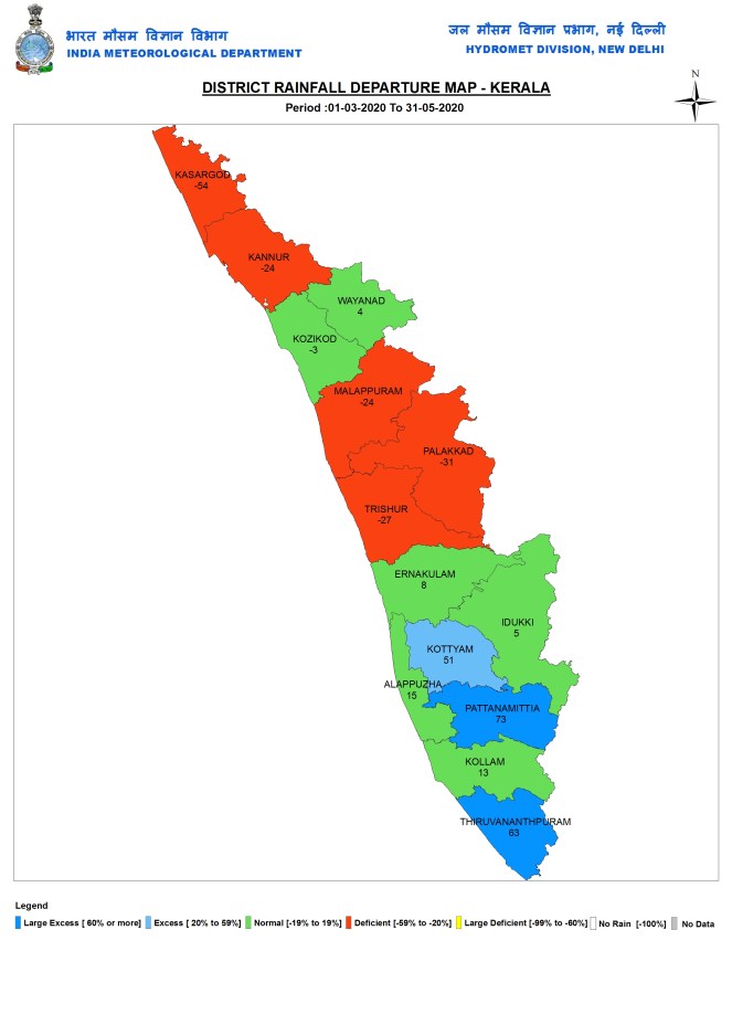 Kerala During pre monsoon 2020 season, Kerala got 386.5 mm or 7% above normal rains.