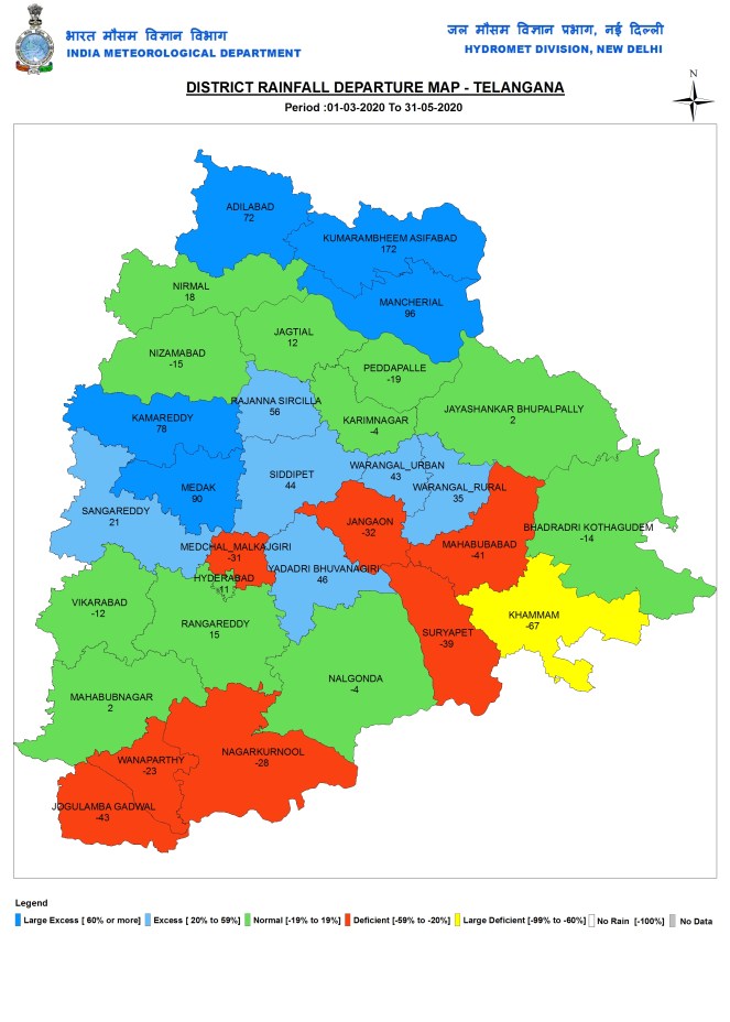 Telangana During pre monsoon 2020 months, Telangana got 62.2 mm or 6% below normal rainfall.