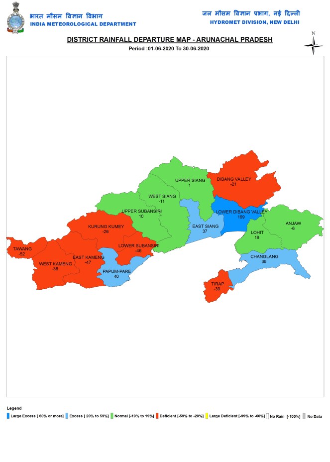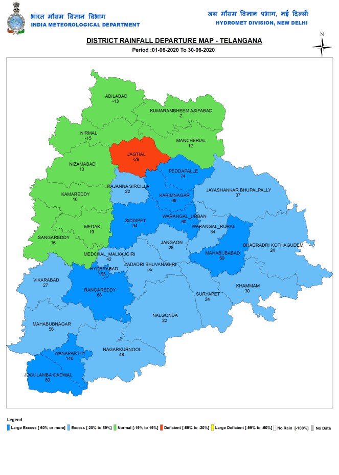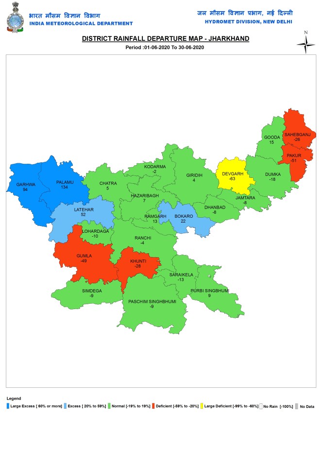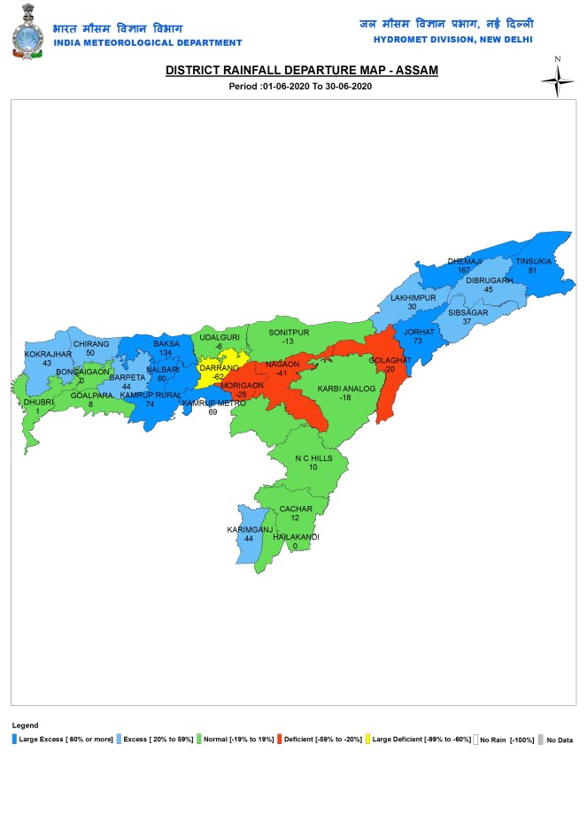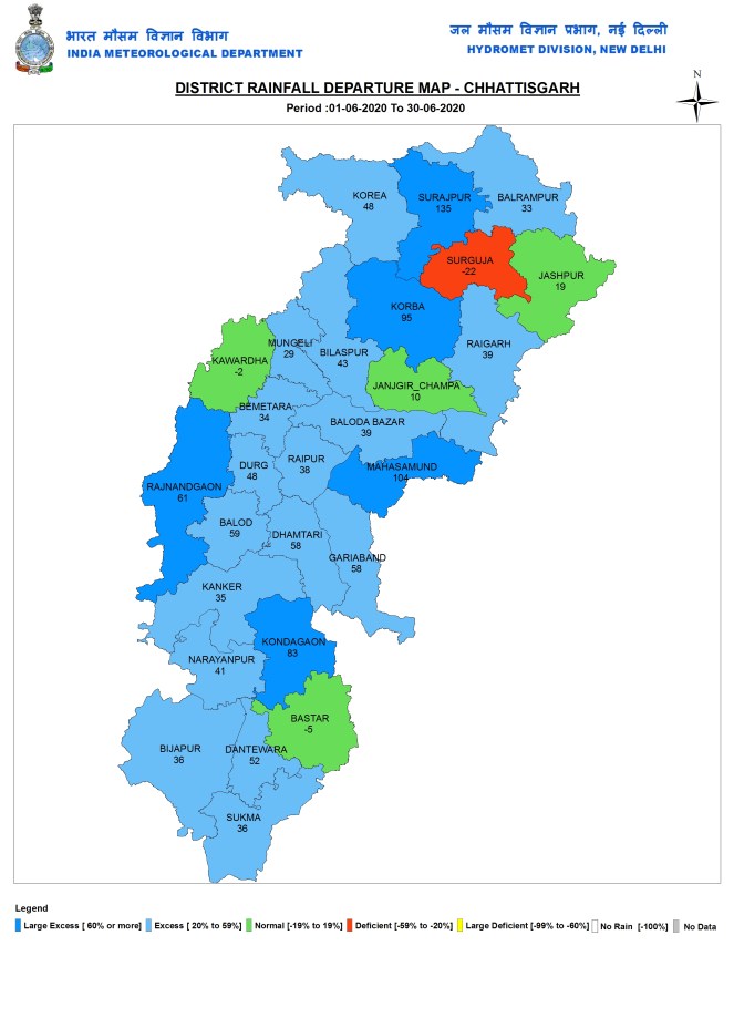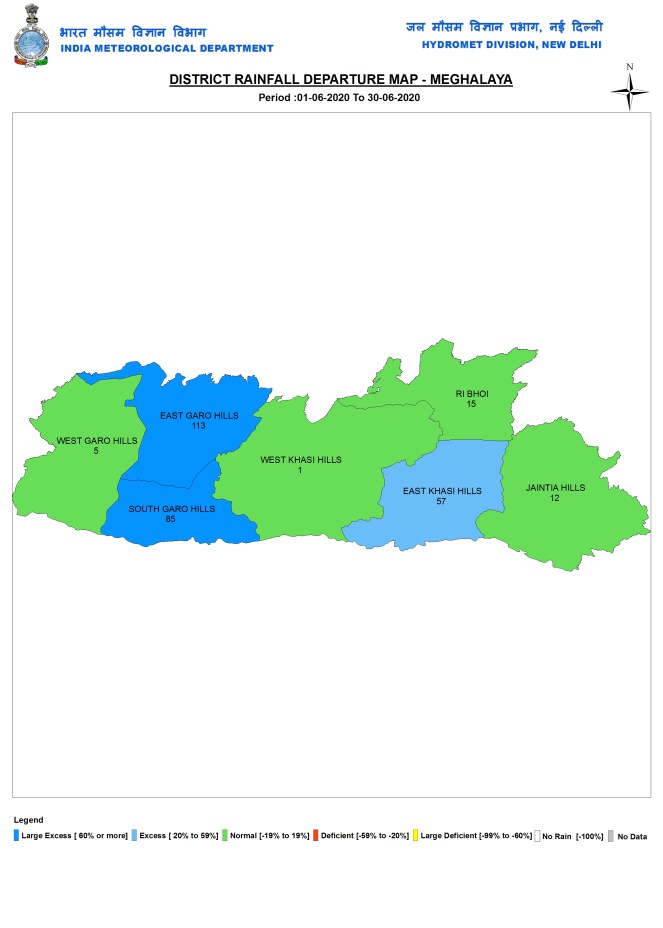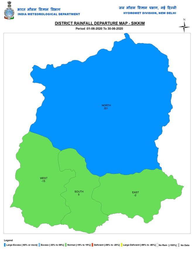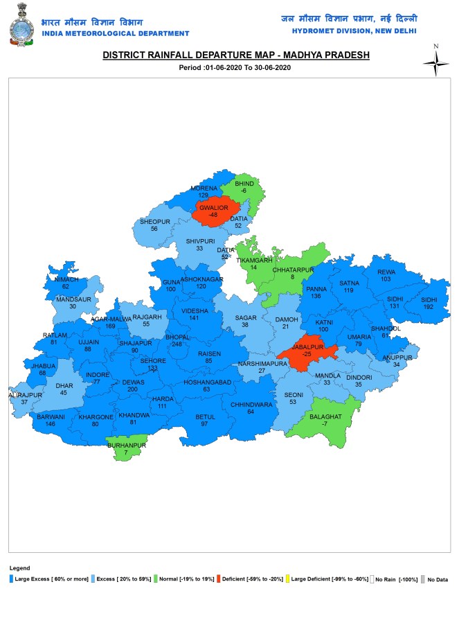 State wise rainfall Three states had large excess rainfall (above 60% surplus rainfall), namely Bihar, Madhya Pradesh and Sikkim. Eight states/UTs (Union Territories) had excess rainfall (20-59% surplus): Assam, Meghalaya, UP, Chhattisgarh, Maharashtra, Telangana, Andhra Pradesh & Andaman and Nicobar. Nine had deficient rainfall (20-59% deficit): Lakshadweep, Mizoram, Manipur, J&K, Ladakh, Himachal Pradesh, Delhi, Dadar & Nagar Haveli. Rest of India had Normal Rainfall.