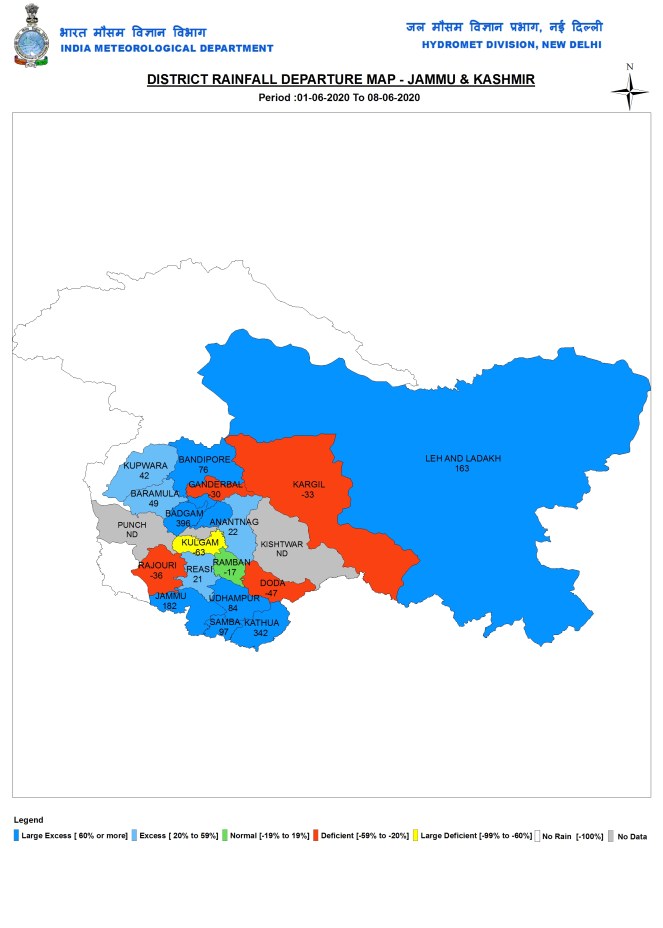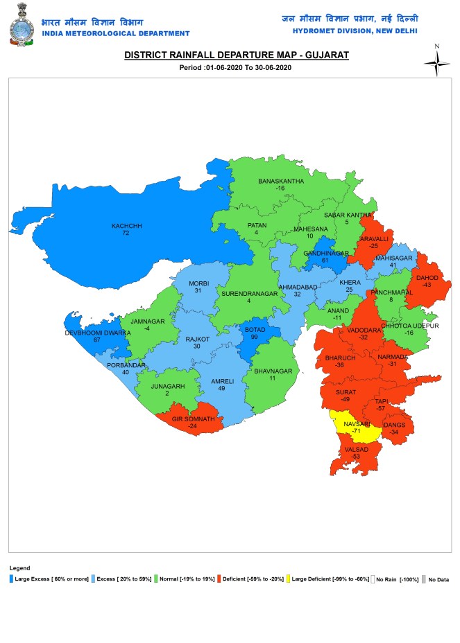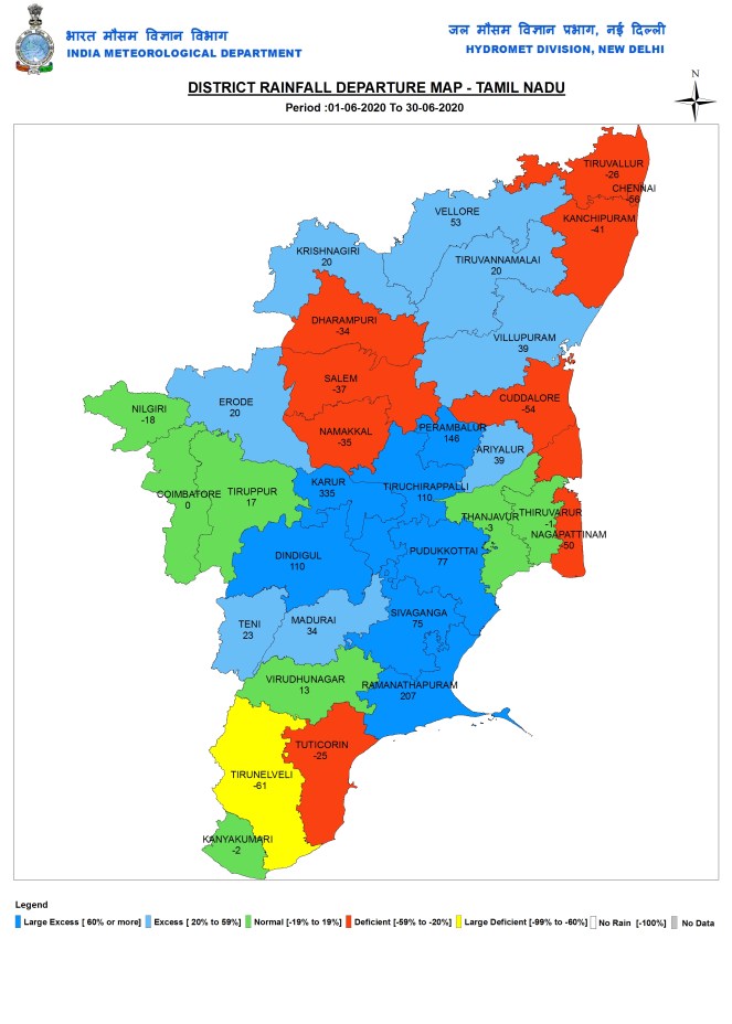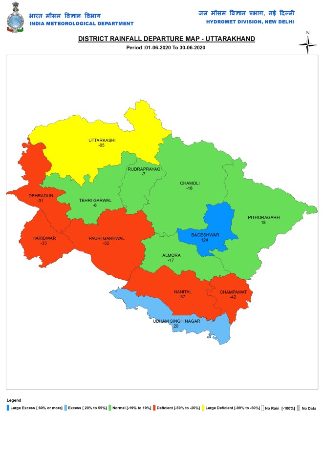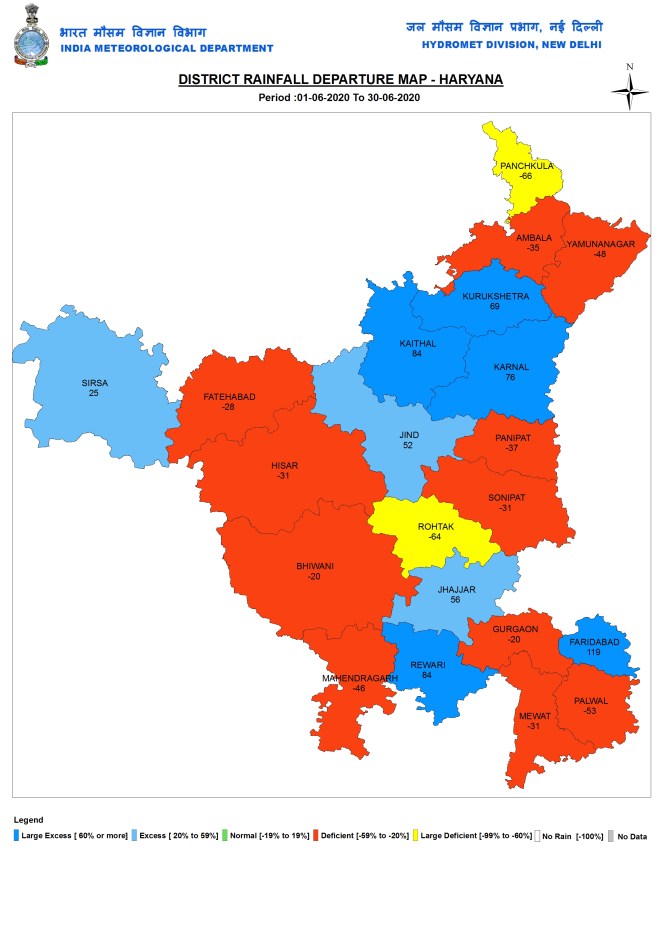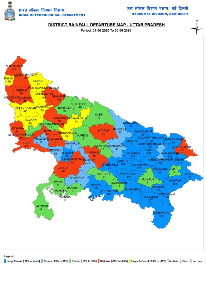 Delhi Northwest Delhi district, has the highest deficit of 92%, the district where SANDRP is located, has had just 4 mm rainfall since June 1, one of the lowest across India. IMD declared that monsoon has set up in Delhi on June 25, but our area in Shalimar Bagh has not seen any rains since June 22 early hours.
