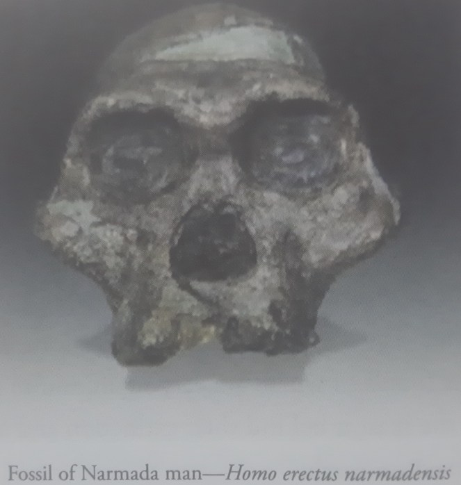 The author also touches the aspect of archaeological assets of pre-historic and post-historic era. Excavations in places like Maheshwar, Navadatoli, Pantnagar, Khapakheda, provided evidences of copper-age culture in this belt. A 12th century Riddheshwar Temple in Harda district (Handia) has been preserved by erecting a wall around it. The valley also discovered around 86 million-year-old fossil of a rare species of an oyster, reconfirming marine life in Central India. A Narmada man Homo Erecuts Narmadensis) was also found there many years. (See photo) Historical evidences of lion, Panther, primeval elephant, rhinoceros and even hippopotamus have also been found in the valley millions years ago, according to a list given in the book.
