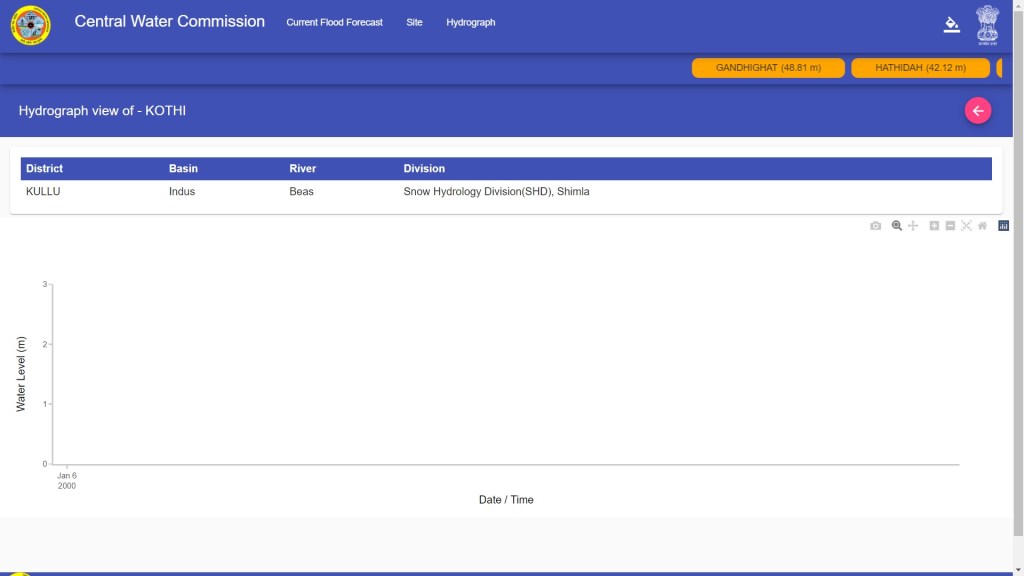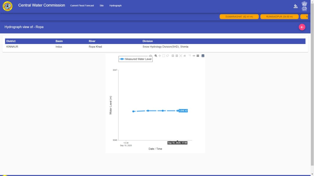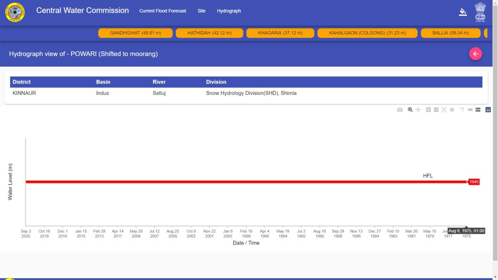In 2020, though the CWC site shows overall 22 sites in Himachal Pradesh but 6 of these sites belong to other states and 5 sites from Sutlej basin have been removed. The Powari has been shifted to Moorang and 4 new sites in Yamuna basin have been added. If we do not count wrong, removed, shifted sites, there are 15 sites functioning here.