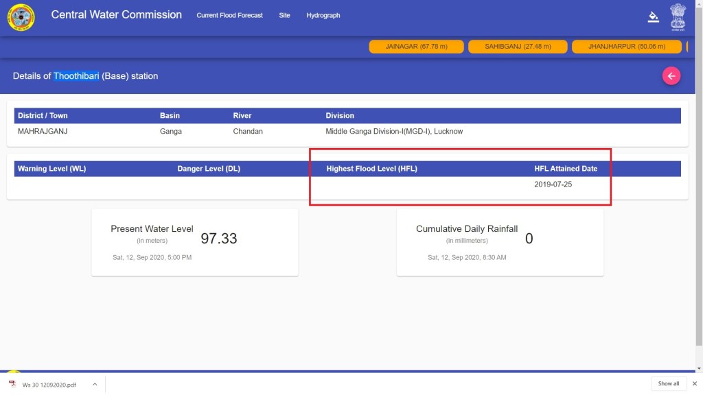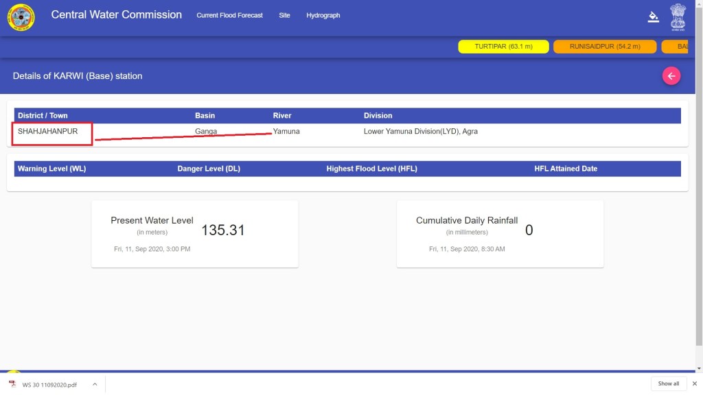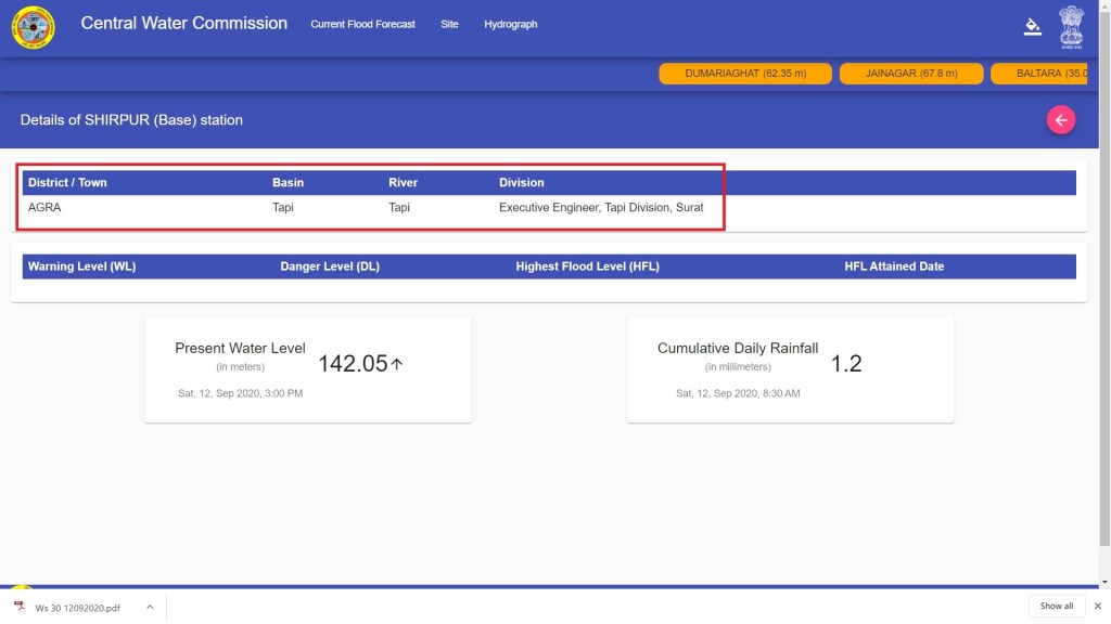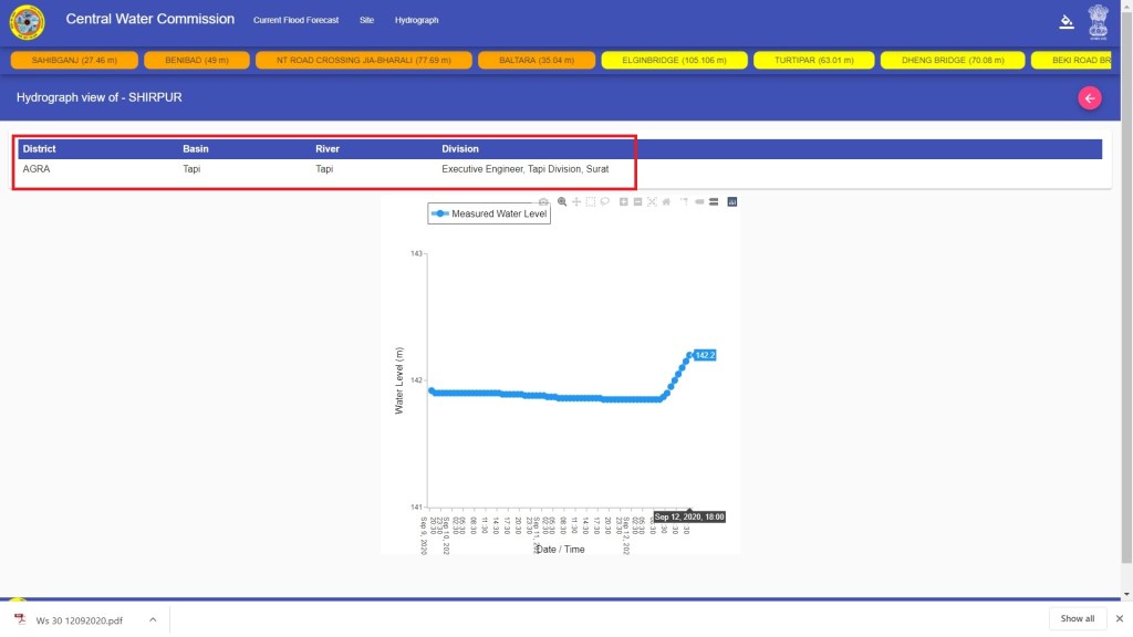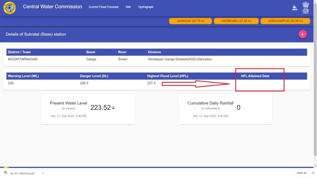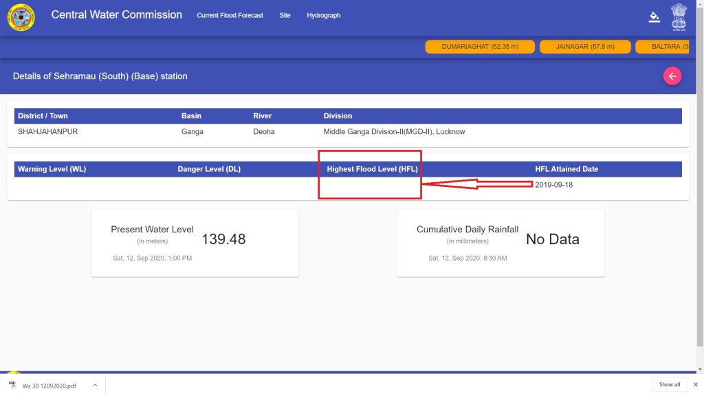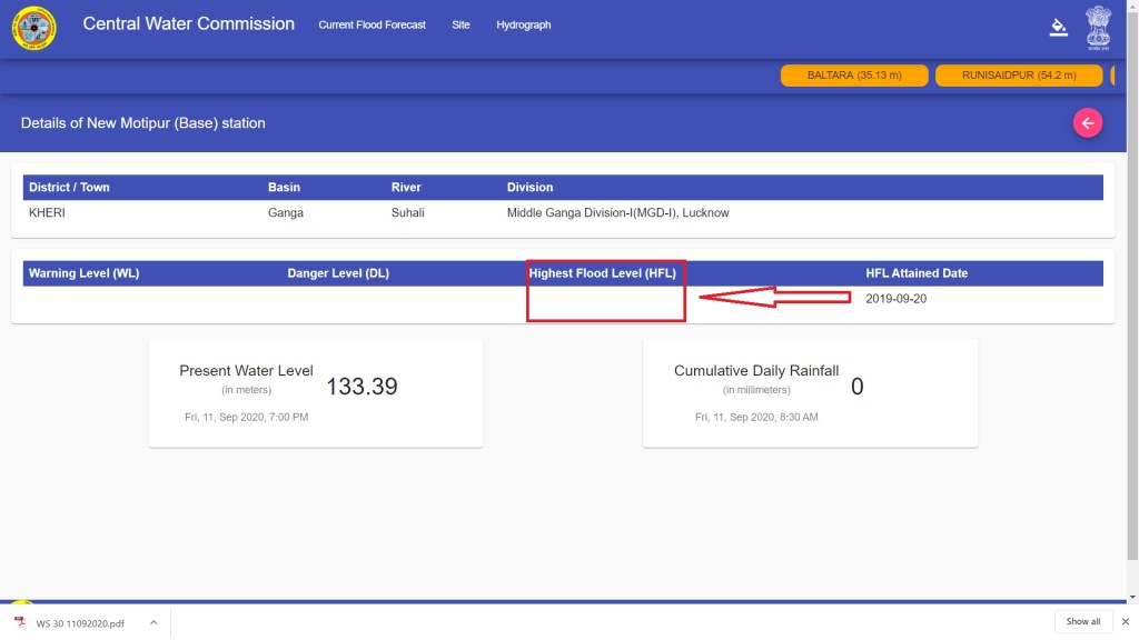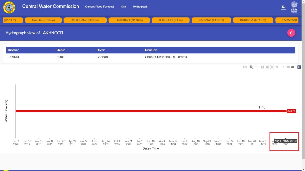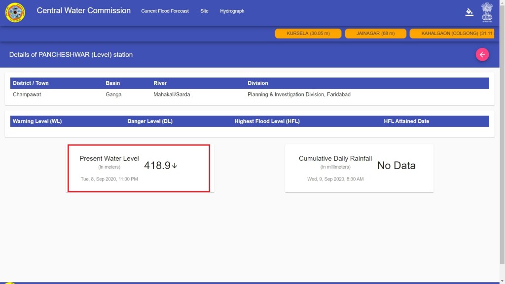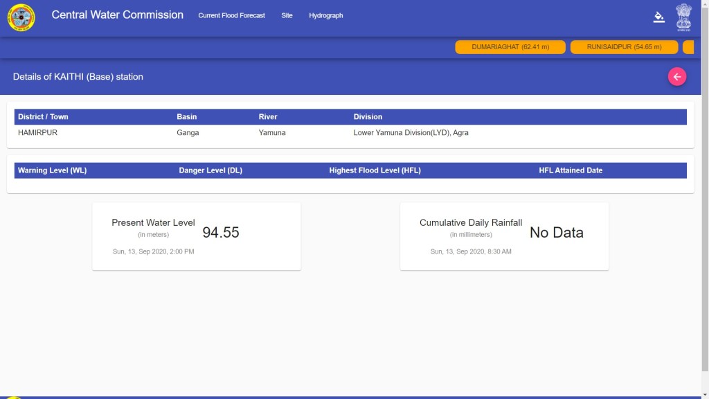 [XXX] The site has crossed HFL on 18-09-2019 but the CWC has not updated it. New HFL is higher than 128.5 M.