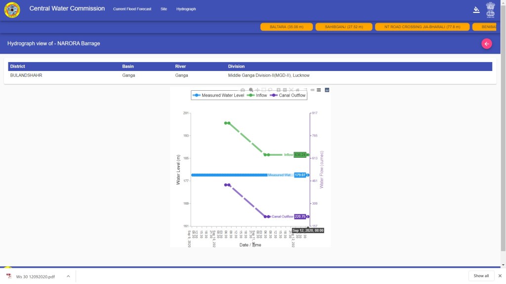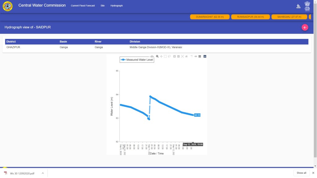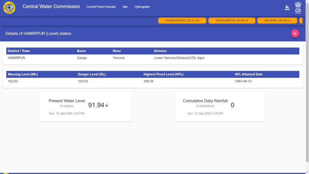 [XVII] The SOP document gives warning level for Kanpur at 113, but the FF site gives it as 112 m.