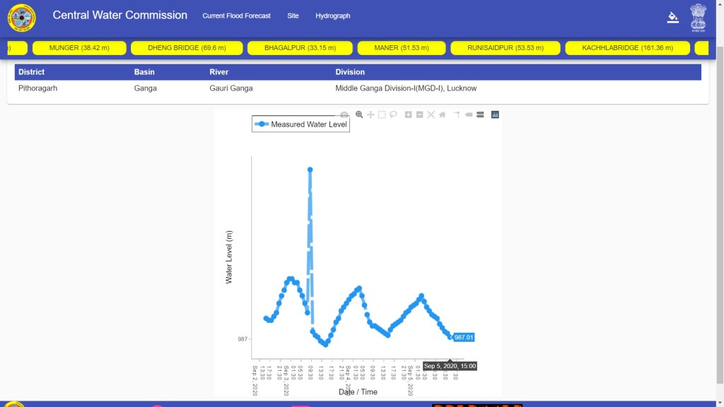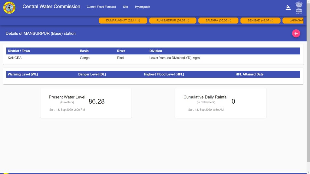 Missing HFL detail for 7 sites has been added now. 2 sites Ropa and Kothi still lack HFL information and their hydrographs are also inactive. Interestingly out of 14 sites 7 have same HFL on August 18, 2019 in Yamuna basin while 4 sites have same HFL of August 03, 2005 in Sutlej basin.