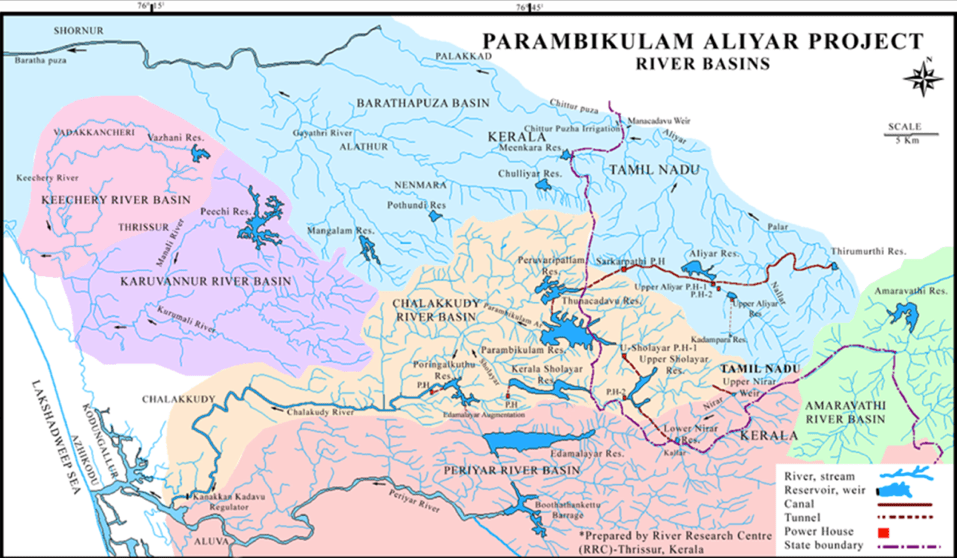 Flood management at Chalakudypuzha basin is a bit complex as four of the six dams, with a combined catchment area of 410 sq.kms are controlled by the Government of Tamil Nadu. Flood management was not a point of consideration in framing the Parambikulam – Aliyar Project Agreement that governs the water sharing from these dams. Given the role of these dams in releasing huge quantity of water during the 2018 floods, Kerala should have engaged with its TN counterpart and arrived at steps to avoid similar situations in future. (This is applicable for the Mullaperiyar dam in Periyar basin too.) It is not known to the public whether the Kerala Government has taken any initiatives in this regard.
