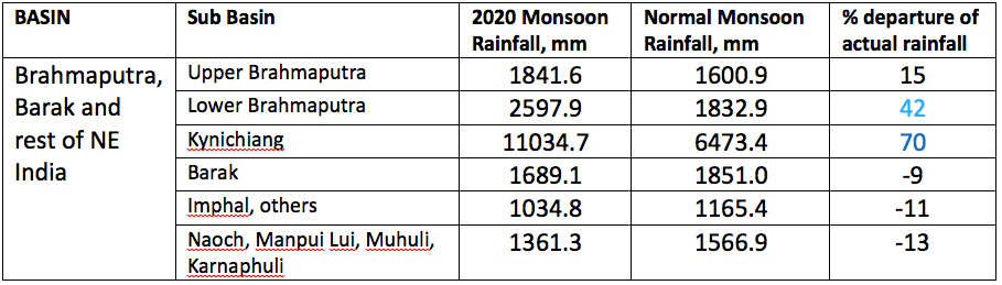North East India IMD divides North East India into six sub. In all the sub basins except in Barak and Naoch et al, the rainfall in SW Monsoon 2020 has been higher than that last year.