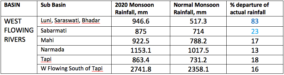 In Tables below we are reporting the sub basin wise rainfall figures for 2020 monsoon for each basin, along with normal rainfall and departure from normal. We are also providing some key interesting highlights.