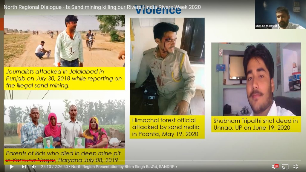 The report “North India Sand Mining Overview” was prepared by SANDRP and presented by Bhim Singh Rawat of SANDRP. For full report from SANDRP on North India Sand Mining, see here. Some key messages of North Zone Report[iii] presentation: