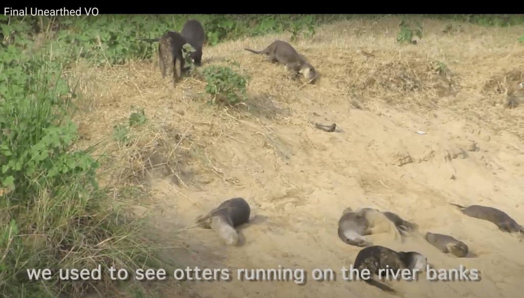 The film shows how indiscriminate sand mining since the 1990s has led to dwindling numbers of Otters from the banks of the Cauvery river, which otherwise used to be found on sand dunes in large numbers. This has in turn led to the avoidable conflict between fisherfolks and Otters. The film also brilliantly shows how sand on the banks, beds and islands of the rivers also stores large quantity of water, about 20% of its volume and that water than becomes available in drier seasons. The Billions of Cubic Meters of sand that has been extracted over the years has also thus destroyed natural water storage capacity of billions of cubic meters. The bed level of the Cauvery river has dropped by over 2 mts at a number of places due to sand mining. The film also highlights how contrcution waste and mining debris can provide substitute for sand to a large extent. Munmun was passionate when she said that the best option for sand is to leave it where it belongs: the River.