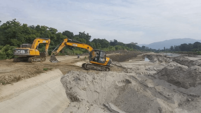 According to ‘Environment Conservation Regulation-1997′ (ECR-1997) stones, pebbles and sands can be collected from the river only after an Initial Environmental Examination (IEE) report is carried out. Bhimdatta Municipality has prepared such a report. The Mahakali municipality – which covers Nepali lands on the next side of Mahakali River – has not prepared the IEE report. The Regulation directs that upto 250 cubic meters of sands and pebbles can be collected everyday once the IEE report is prepared. While collecting materials no machines like excavator can be used, they should be collected manually.
