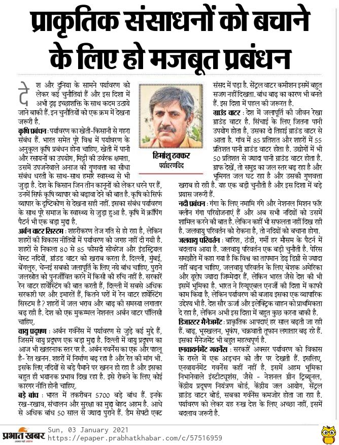 On environmental challenges of 2021. https://epaper.prabhatkhabar.com/2946495/RANCHI-City/City (03 Jan. 2021)
