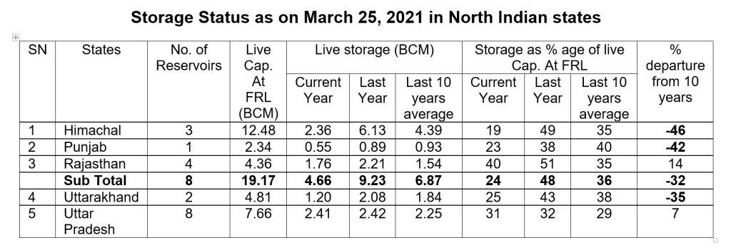 Apart from rainfall deficiency, there has been serious anomalies in rainfall distribution in the north India during monsoon, post monsoon 2020 and winter rains 2021 determining the river flows and reservoirs storage.