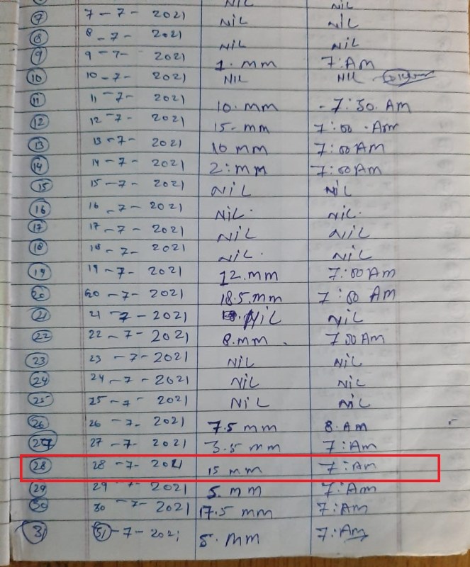 घटना स्थल से लगभग 60 किमी दूर स्थित थलीसैंण तहसील में बारिश को मापा जाता है, जो हर सुबह 09:00 बजे पौड़ी में आपदा नियंत्रण कक्ष को दैनिक वर्षा डेटा प्रस्तुत करता है। आपदा नियंत्रण प्रकोष्ठ के अनुसार 27 जुलाई से 28 जुलाई के बीच 24 घंटों के दौरान महज 15 मिलीमीटर बारिश हुई।