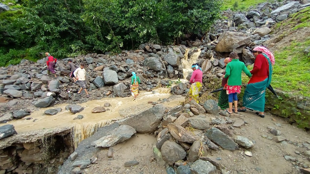 यह गांव पौड़ी-गैरसैंण मुख्य सड़क मार्ग से लगभग आधा किलोमीटर ढलान पर बसा है। सुबह जब श्याम सिंह रावत सड़क पर गए तो उन्होंने देखा कि भूस्खलन के कारण करीब 20 मीटर लंबी सड़क क्षतिग्रस्त हो गई है। साथ में गदेरे के पास सड़क का बड़ा हिस्सा बड़े बड़े चट्टानों, मलबे के नीचे दब गया है। जिससे वाहनों की आवाजाही पूरी तरह से अवरुद्ध हो गई। इसी गदेरे पर बना एक पैदल पुल भी बह गया।